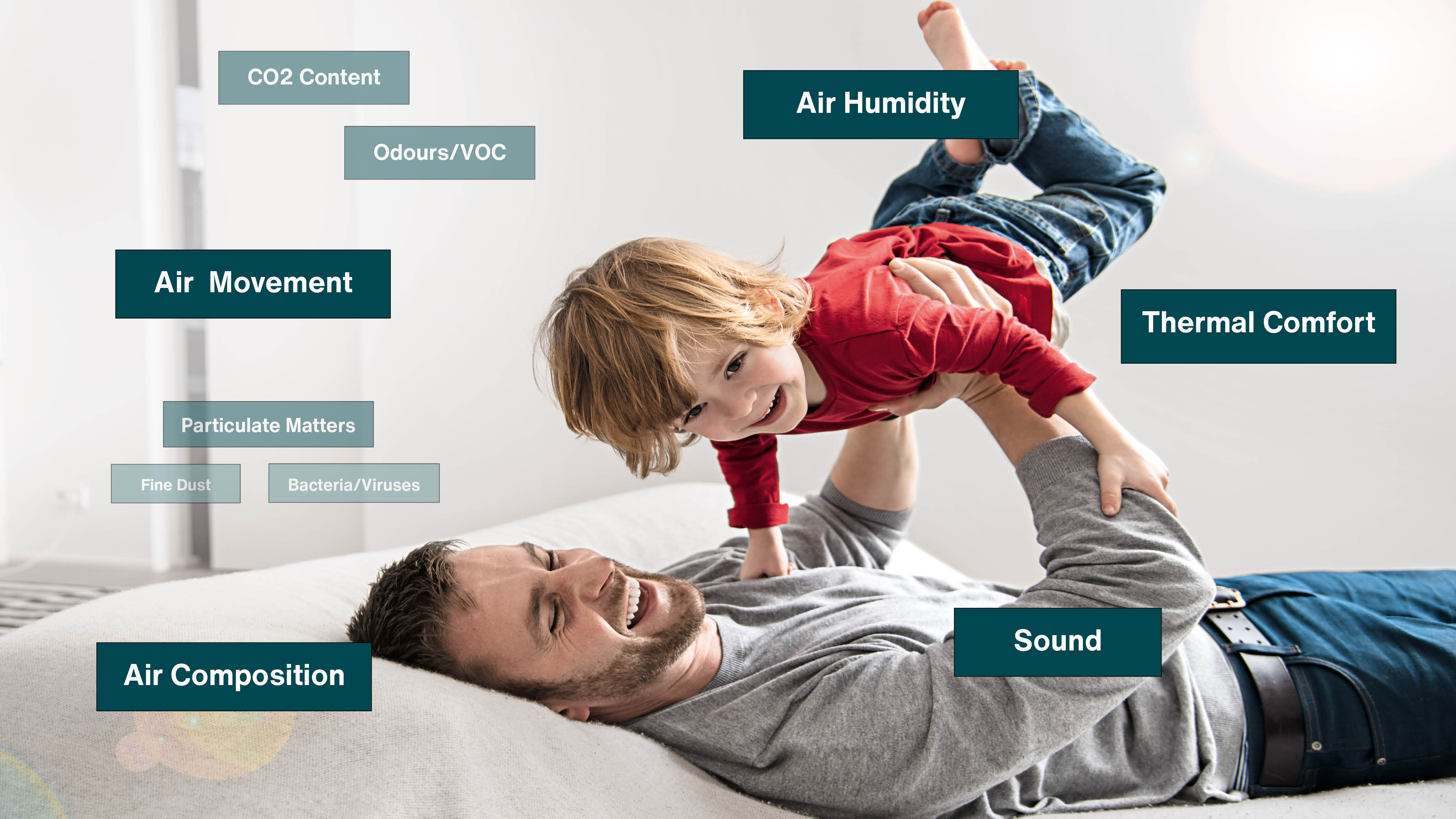 Healthy indoor air in the home is important for our well-being and health. An optimal indoor climate can be measured by the following factors: